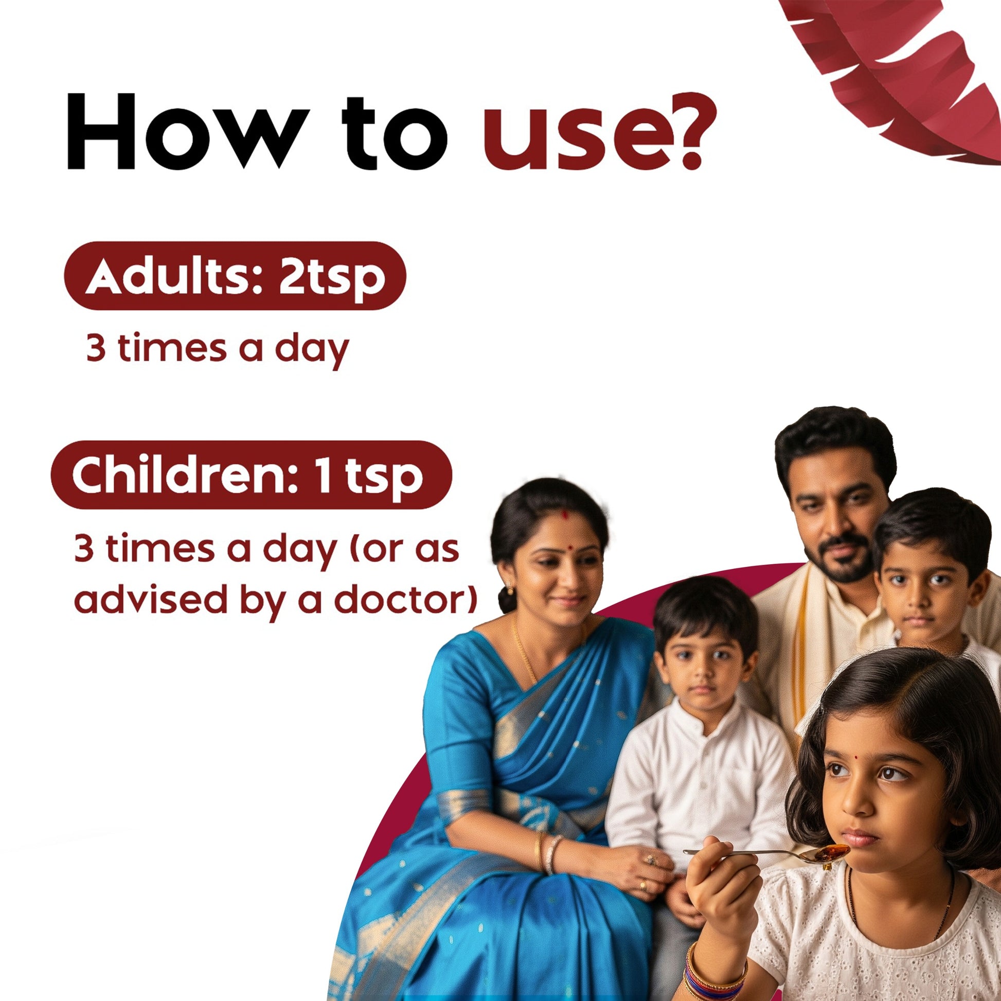 Adults: 2 teaspoons (5–10 ml) Children: 1 teaspoon (5 ml)